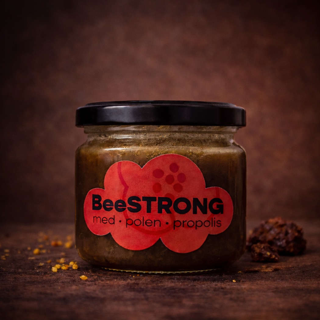 BEE STRONG je prirodna mešavina meda, polena i propolisa – tri snažna sastojka koja ujedinjuju snagu prirode za vašu svakodnevnu vitalnost. Med je poznat po svojim antimikrobnim i antigljivičnim svojstvima, dok propolis sa 300+ prirodnih supstanci i polen bogat vitaminima i mineralima čine ovu kombinaciju savršenim dodatkom vašoj rutini.